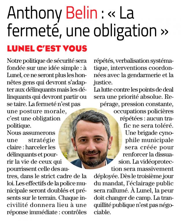 Anthony Belin - Liste Lunel c'est vous ! Elections Municipales Lunel 2026