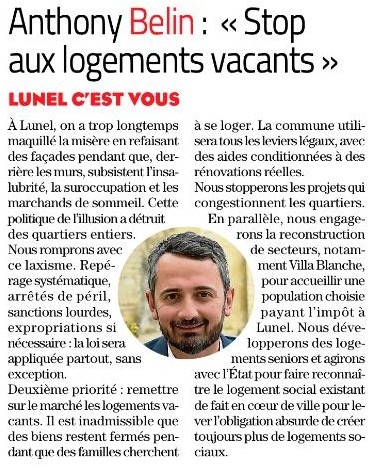 Anthony Belin - Liste Lunel c'est vous ! Elections Municipales Lunel 2026